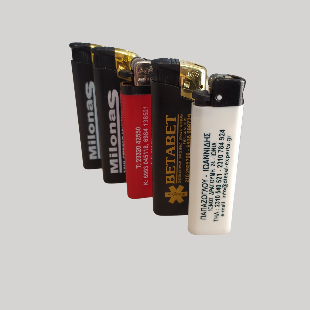 A large variety of promotional lighters with single or double-sided printing of your logo and business details.